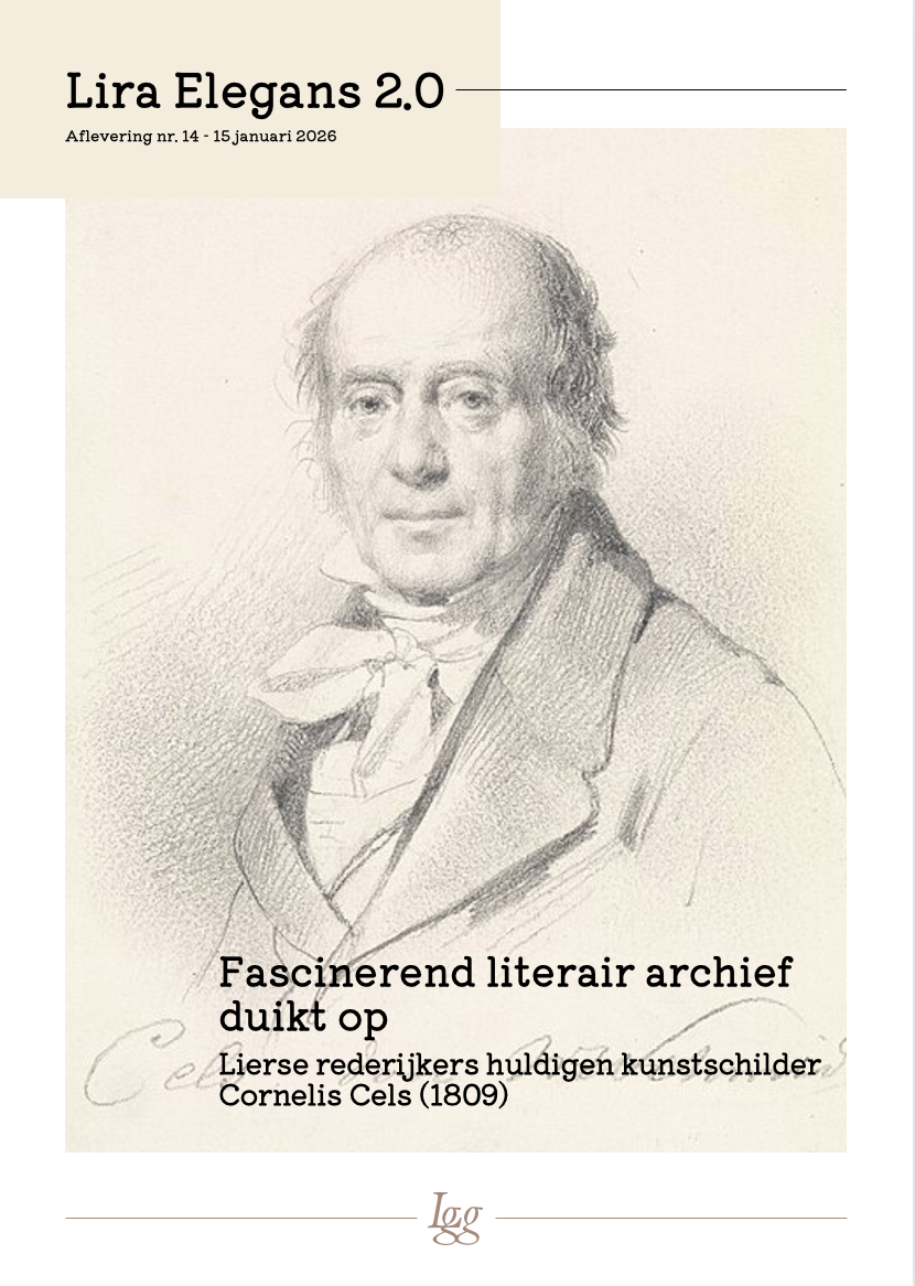 Recent is via een bekende website van tweedehandse artikelen het literaire archief opgedoken van de in Lier geboren portret- en historieschilder Cornelis Cels (Lier, 10 juni 1778 - Brussel, 3 maart 1859). Het werd jaren geleden door een fotograaf uit de Westhoek aangekocht op een vlooienmarkt in Brussel. Hij bood het op zijn beurt te koop aan. De stukken, zowel gedrukte als in handschrift gebleven gedichten en documenten, zitten in een dubbelgevouwen blad waarop in de hand van de kunstenaar geschreven staat: “Pièces fugitives, vers, &a de ma composition et d’autres en flamand, français & italien”. Op het blad is verder een kleine schets in potlood van de hand van Cels getekend. De gedichten zijn van de hand van de kunstschilder zelf die over enig literair talent beschikte, of van familieleden en vrienden. Binnen dit bestek zijn vooral de, meestal anonieme, lofdichten op Cels van belang, die door Lierse rederijkers werden geschreven, onder meer naar aanleiding van de ophanging in 1809 van Cels’ schilderij De onthoofding van Joannes De Doper, in de Sint-Gummaruskerk in Lier.