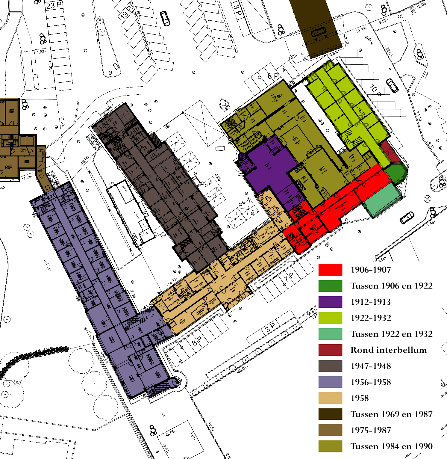 Vooraleer het geheel in ere kan hersteld worden is het echter belangrijk om te weten welke erfgoedwaarden er (nog) aanwezig zijn en welke elementen er exact waardevol zijn en welke slechts uit een latere verbouwing dateren. Om dit na te gaan werd eerst het historische verhaal van het gebouw achterhaald aan de hand van archief- en literatuuronderzoek. De nadruk hierbij lag op het bouwkundige aspect en niet op de gebruikers- en eigenaarsgeschiedenis. Vervolgens werd ter plaatse nagekeken welke elementen uit dit historische verhaal heden nog aanwezig zijn en waar de latere ingrepen hebben plaatsgevonden.